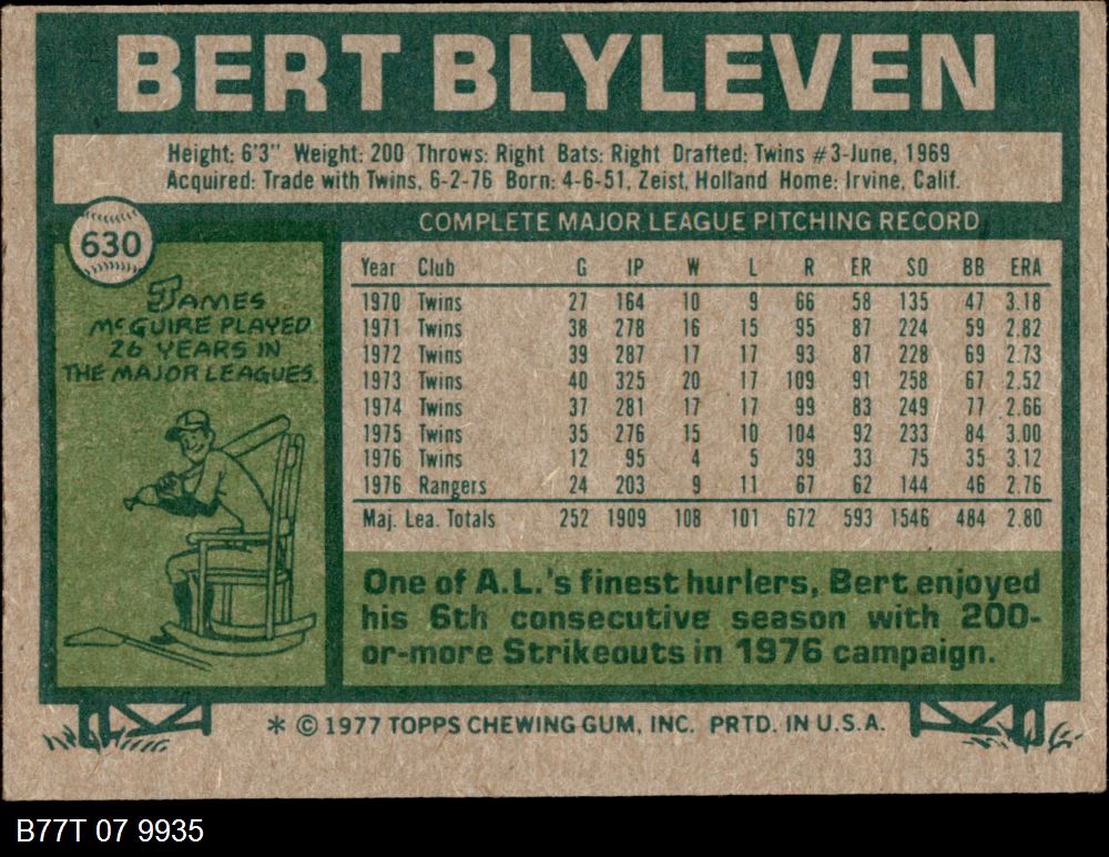 | 1977 Topps #630 Bert Blyleven | 4 - VG/EX | Front | Back |