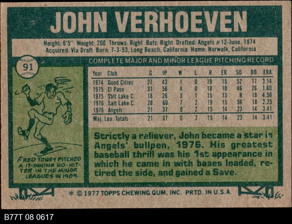 | 1977 Topps #91 John Verhoeven | 4 - VG/EX | Front | Back |
