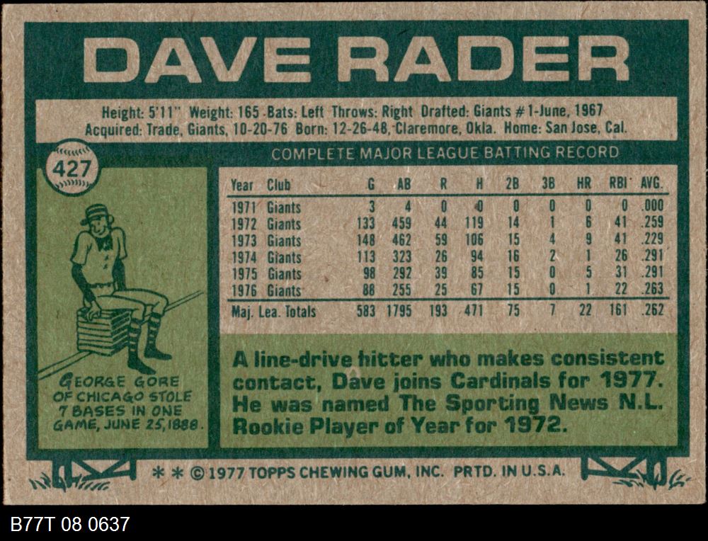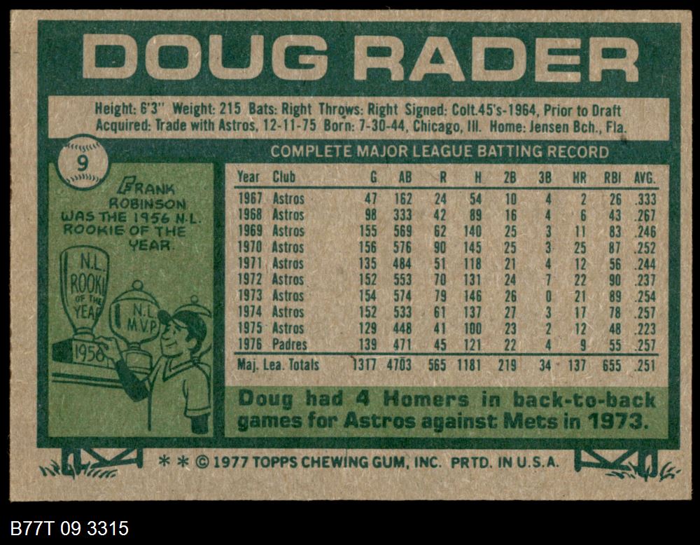 | 1977 Topps #9 Doug Rader | 4 - VG/EX | Front | Back |