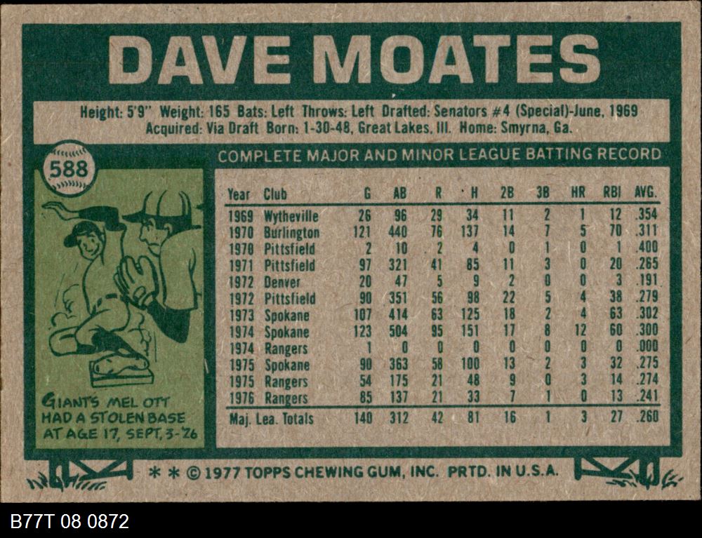 | 1977 Topps #588 Dave Moates | 4 - VG/EX | Front | Back |