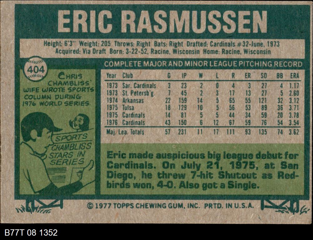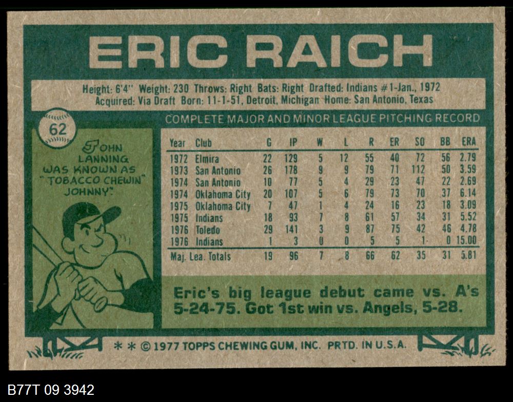 | 1977 Topps #62 Eric Raich | 5 - EX | Front | Back |