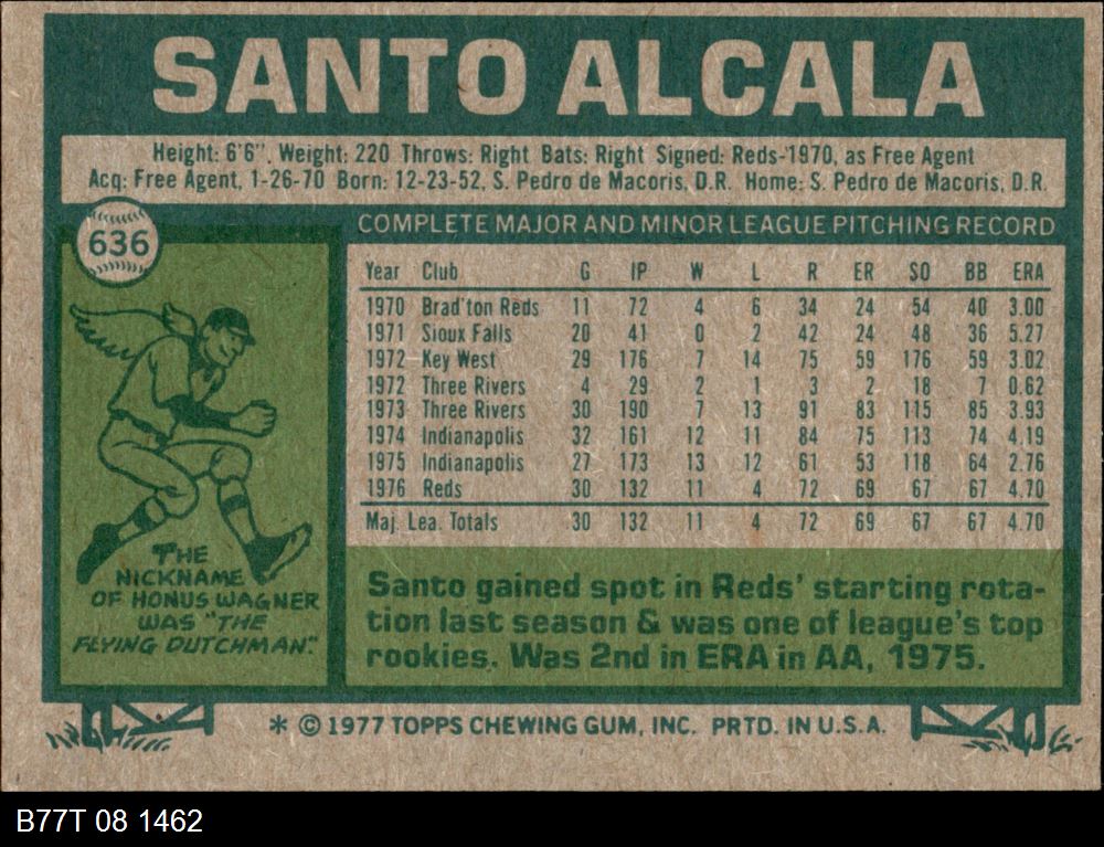 | 1977 Topps #636 Santo Alcala | 4 - VG/EX | Front | Back |