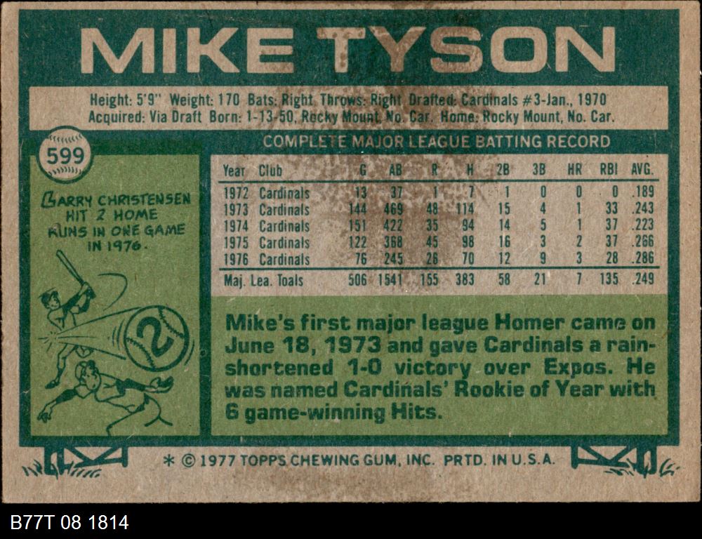 | 1977 Topps #599 Mike Tyson | 4 - VG/EX | Front | Back |