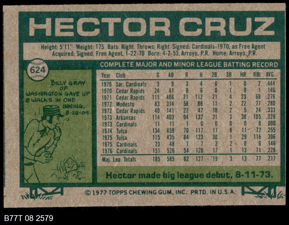 | 1977 Topps #624 Hector Cruz | 5 - EX | Front | Back |