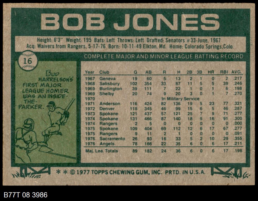 | 1977 Topps #16 Bob Jones | 4 - VG/EX | Front | Back |