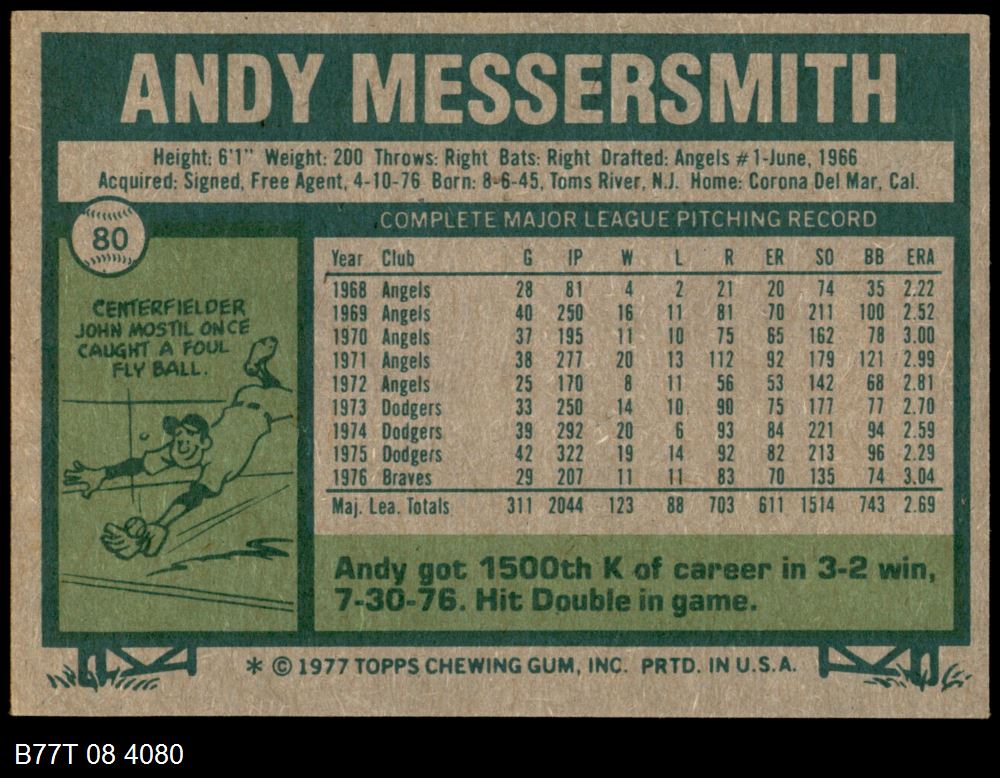 | 1977 Topps #80 Andy Messersmith | 5 - EX | Front | Back |