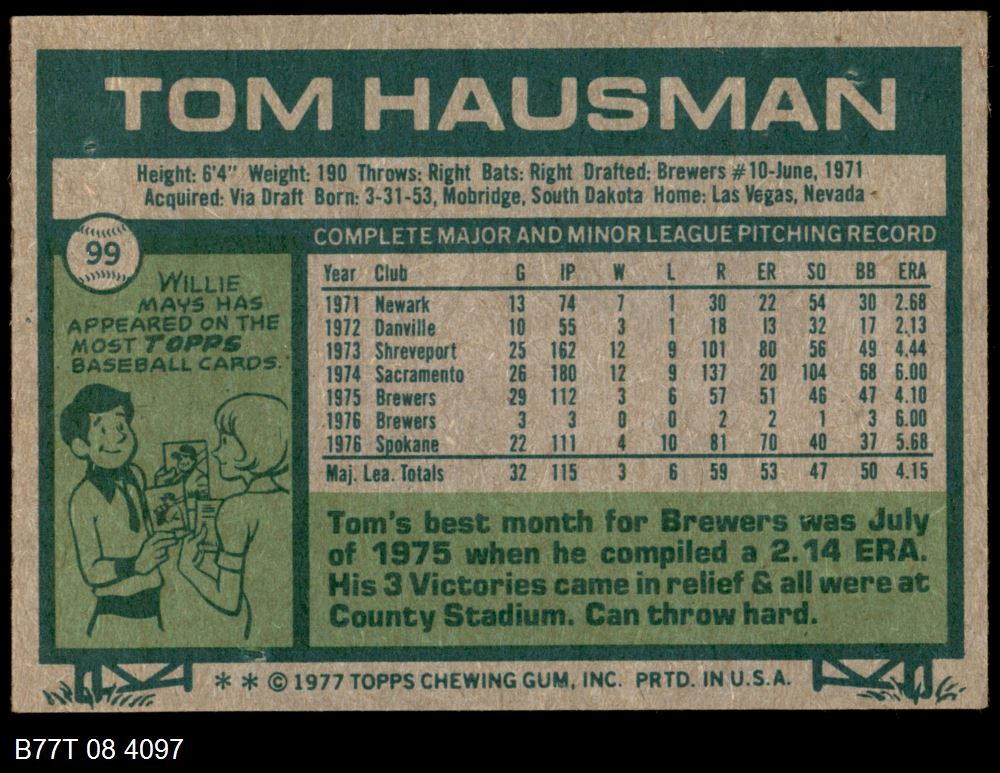 | 1977 Topps #99 Tom Hausman | 4 - VG/EX | Front | Back |