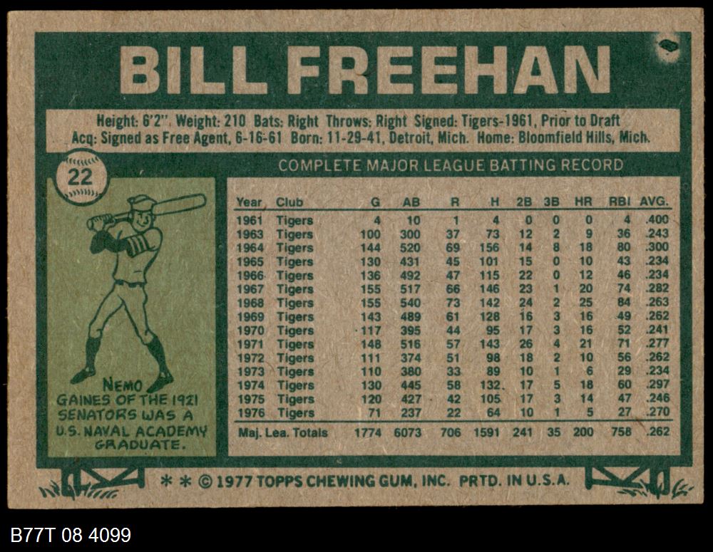 | 1977 Topps #22 Bill Freehan | 4 - VG/EX | Front | Back |