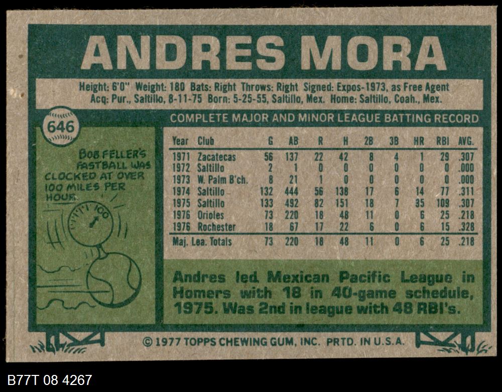 | 1977 Topps #646 Andres Mora | 3 - VG | Front | Back |