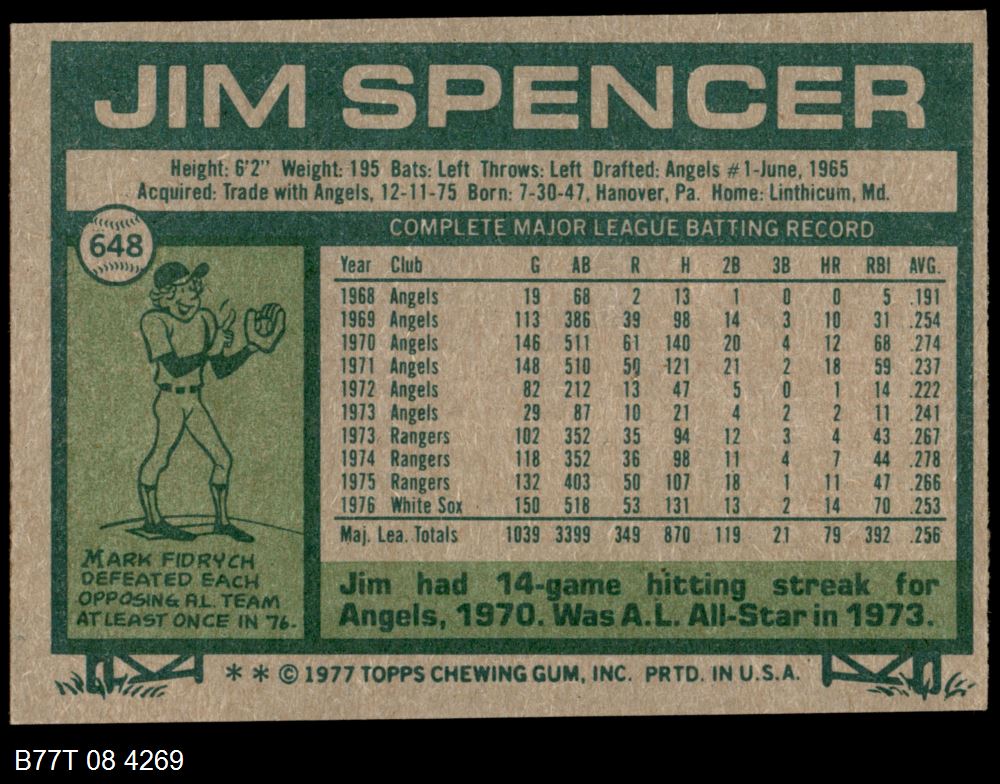 | 1977 Topps #648 Jim Spencer | 4 - VG/EX | Front | Back |
