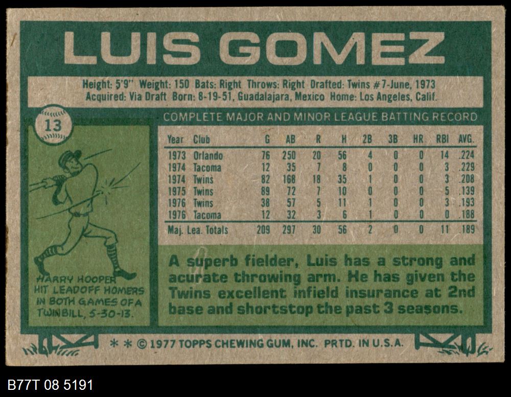 | 1977 Topps #13 Luis Gomez | 3 - VG | Front | Back |