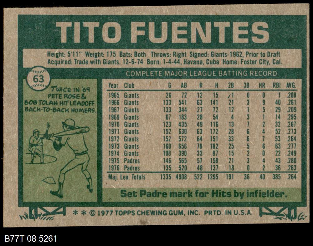 | 1977 Topps #63 Tito Fuentes | 4 - VG/EX | Front | Back |