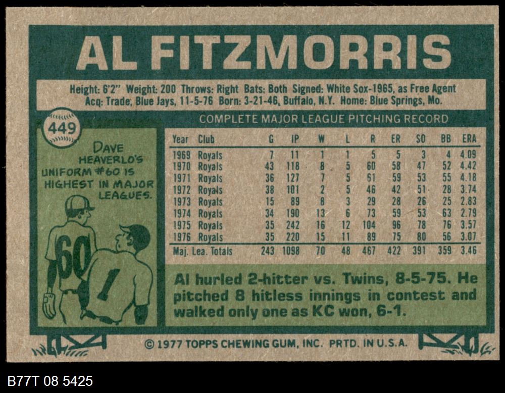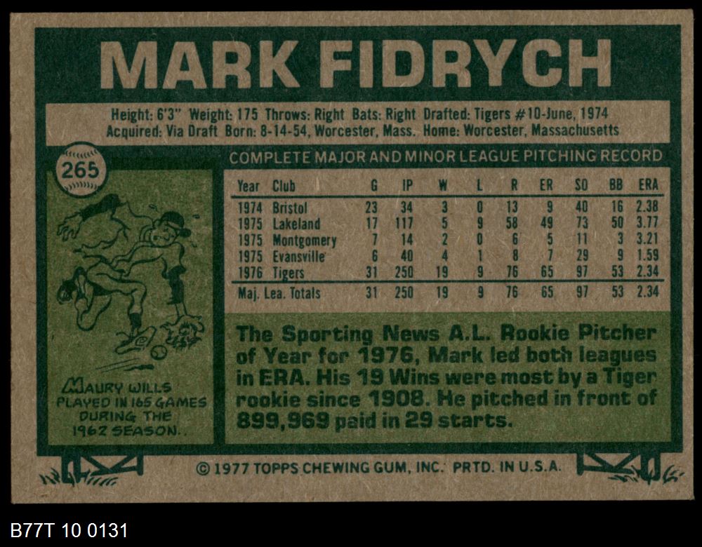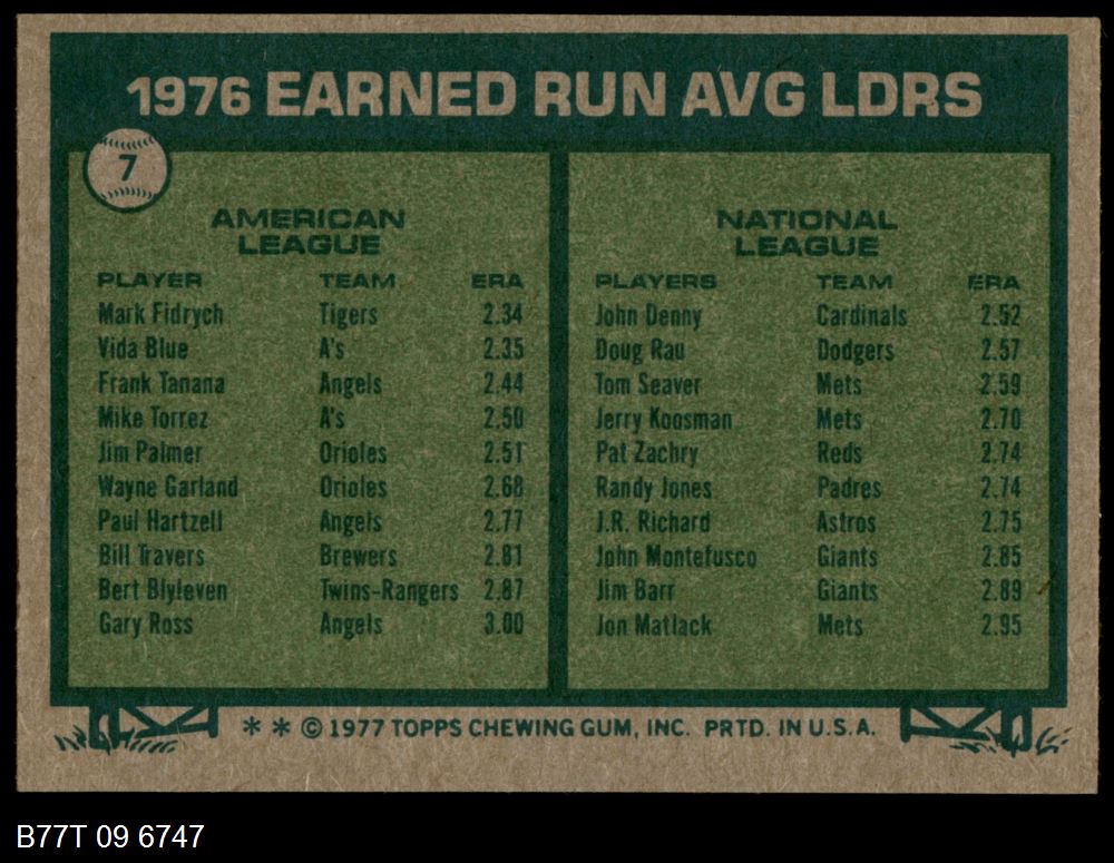 | 1977 Topps #7 - Mark Fidrych / John Denny ERA Leaders | 5 - EX | Front | Back |