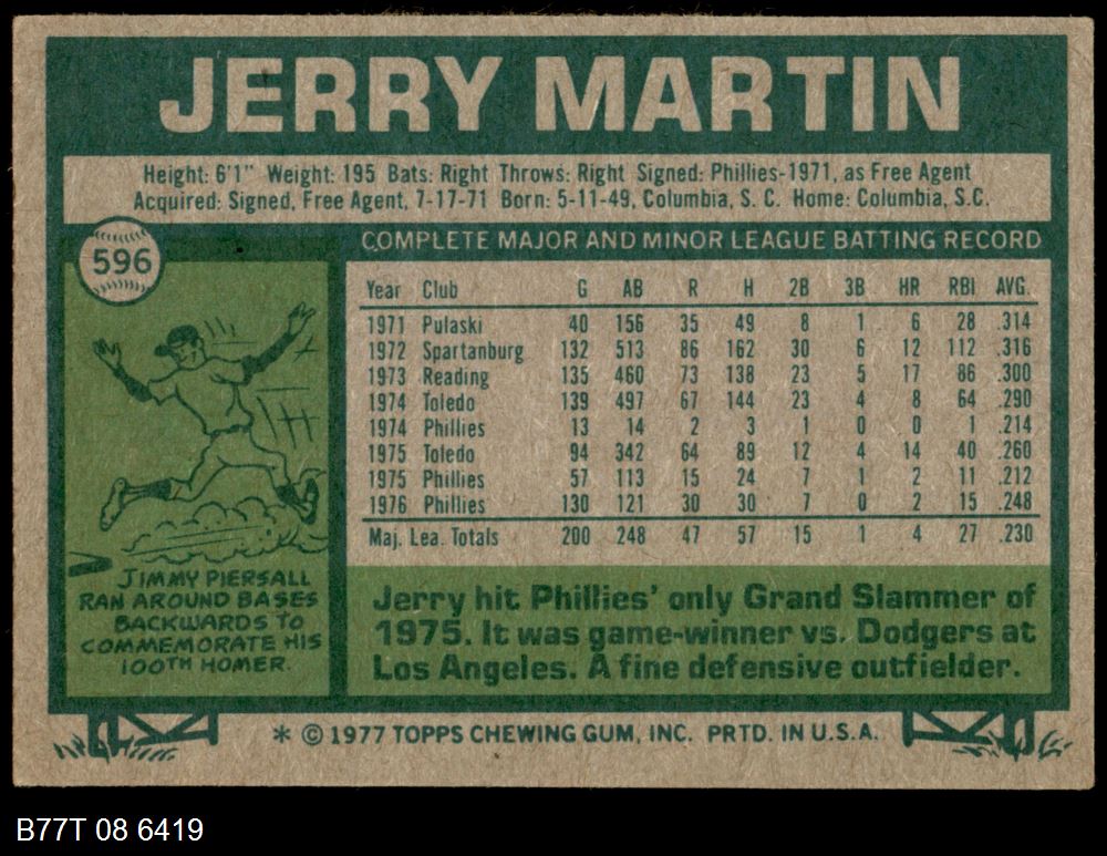 | 1977 Topps #596 Jerry Martin | 4 - VG/EX | Front | Back |