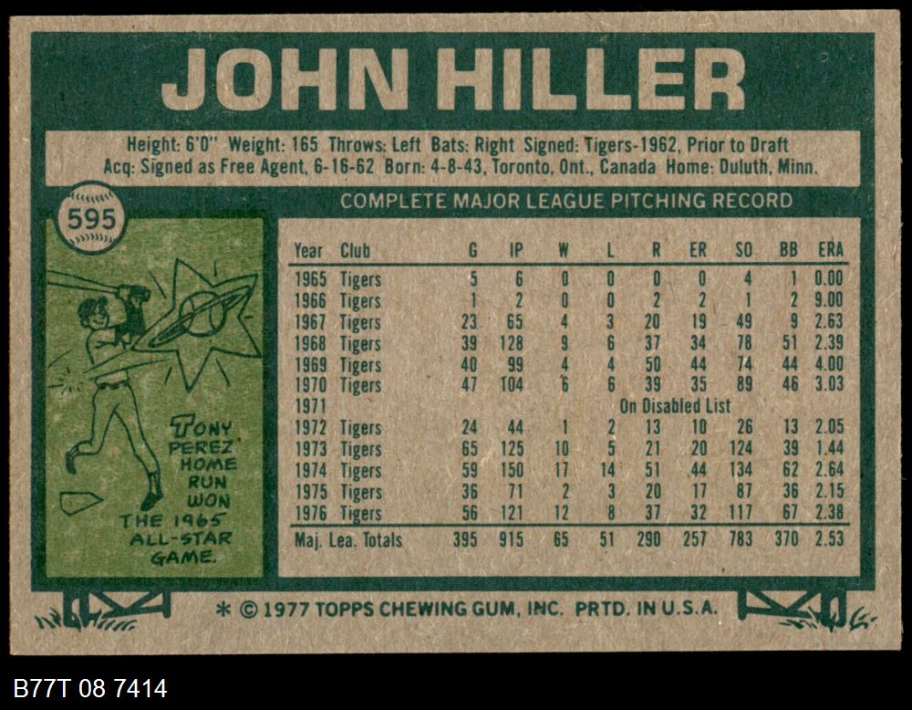 | 1977 Topps #595 John Hiller | 5 - EX | Front | Back |