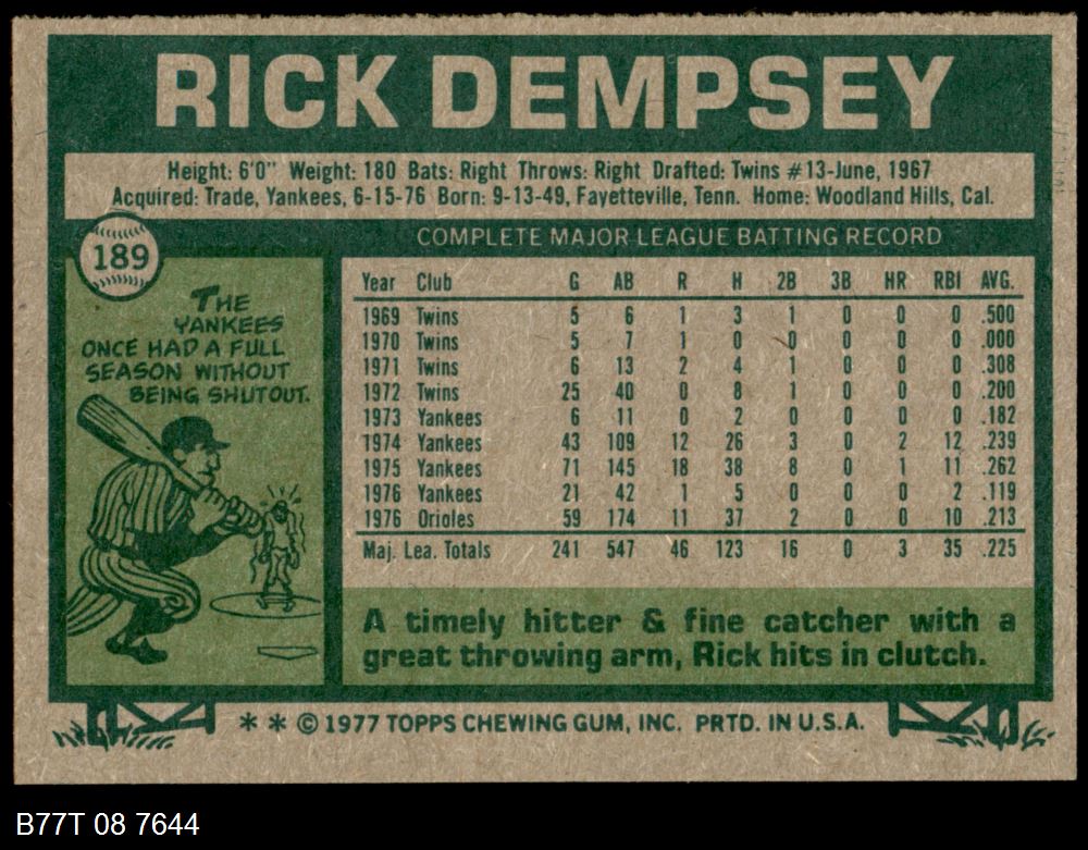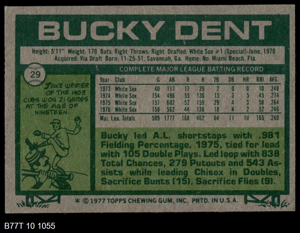 | 1977 Topps #29 Bucky Dent | 3 - VG | Front | Back |