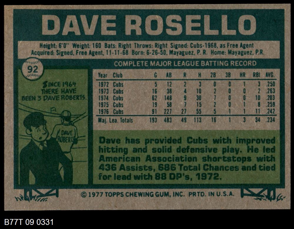 | 1977 Topps #92 Dave Rosello | 5 - EX | Front | Back |