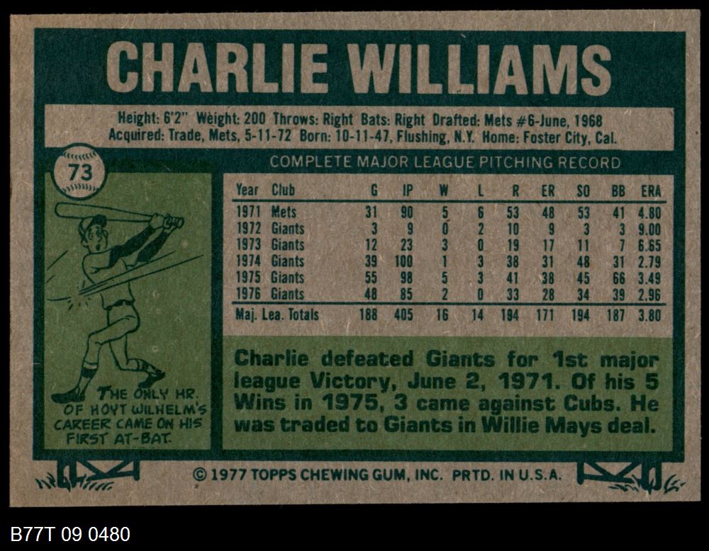 | 1977 Topps #73 Charlie Williams | 5 - EX | Front | Back |