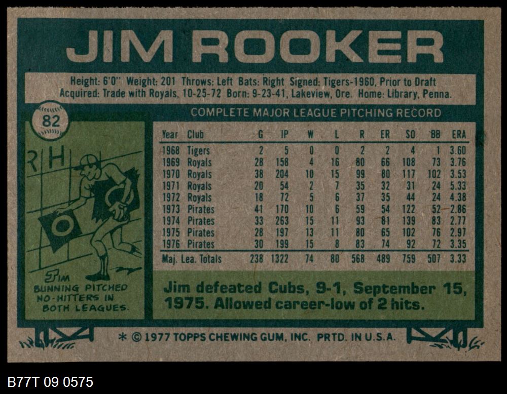 | 1977 Topps #82 Jim Rooker | 5 - EX | Front | Back |