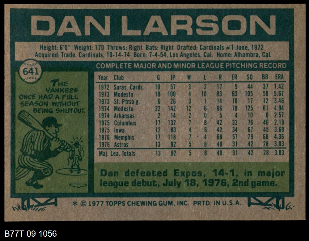 | 1977 Topps #641 Dan Larson | 4 - VG/EX | Front | Back |