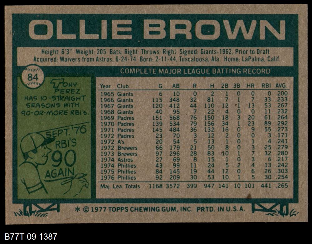 | 1977 Topps #84 Ollie Brown | 5 - EX | Front | Back |
