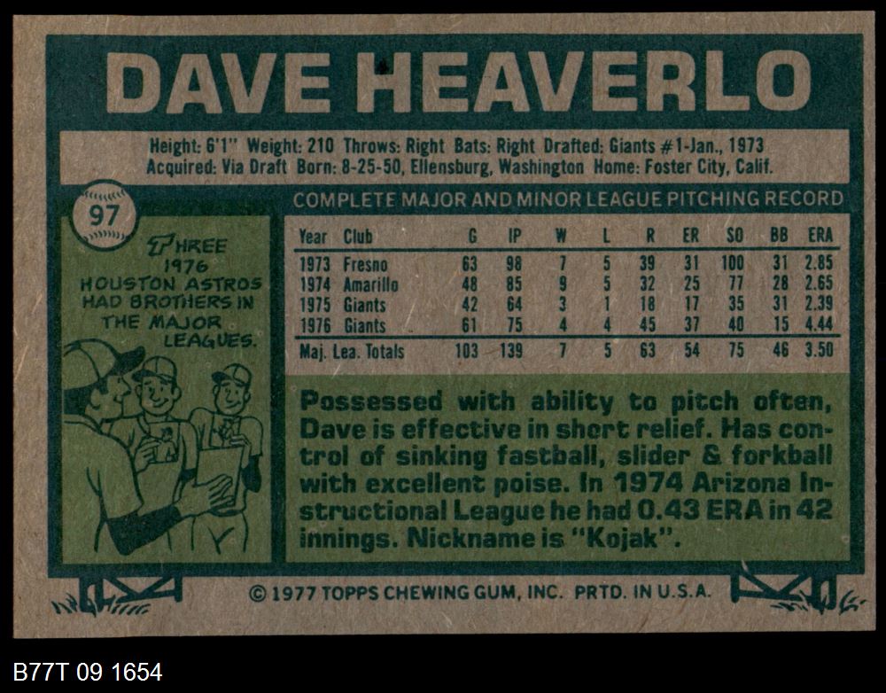 | 1977 Topps #97 Dave Heaverlo | 4 - VG/EX | Front | Back |