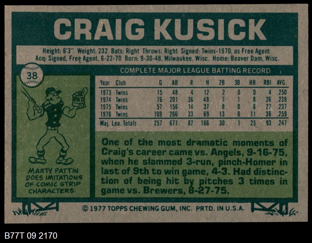 | 1977 Topps #38 Craig Kusick | 4 - VG/EX | Front | Back |