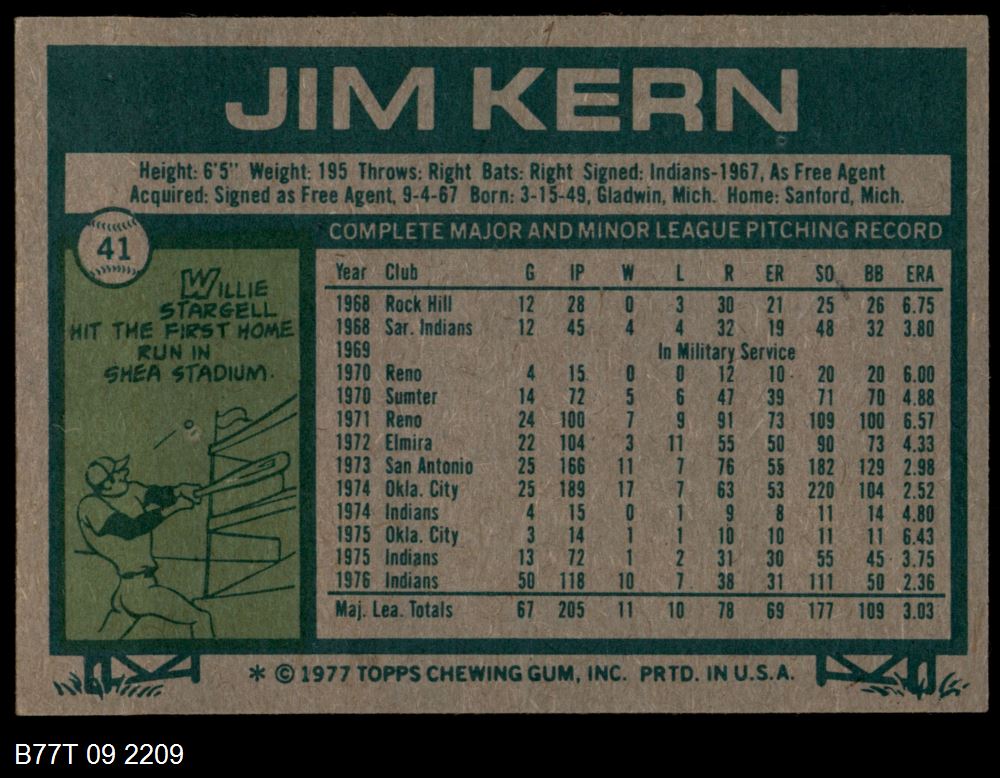 | 1977 Topps #41 Jim Kern | 4 - VG/EX | Front | Back |
