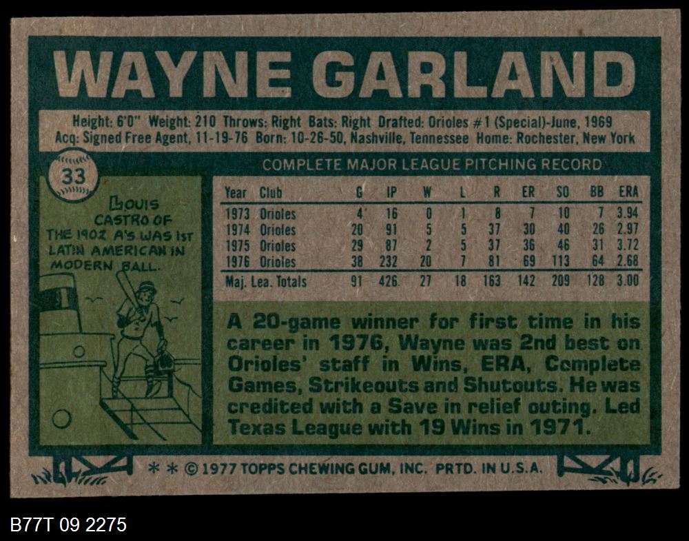 | 1977 Topps #33 Wayne Garland | 4 - VG/EX | Front | Back |