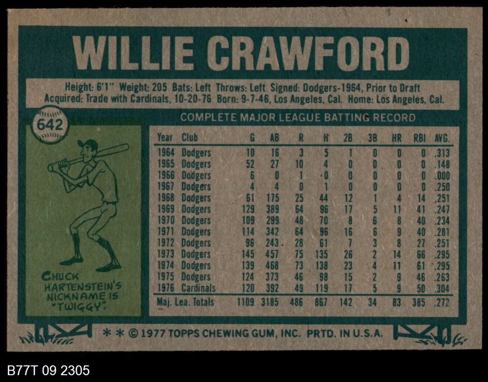 | 1977 Topps #642 Willie Crawford | 5 - EX | Front | Back |
