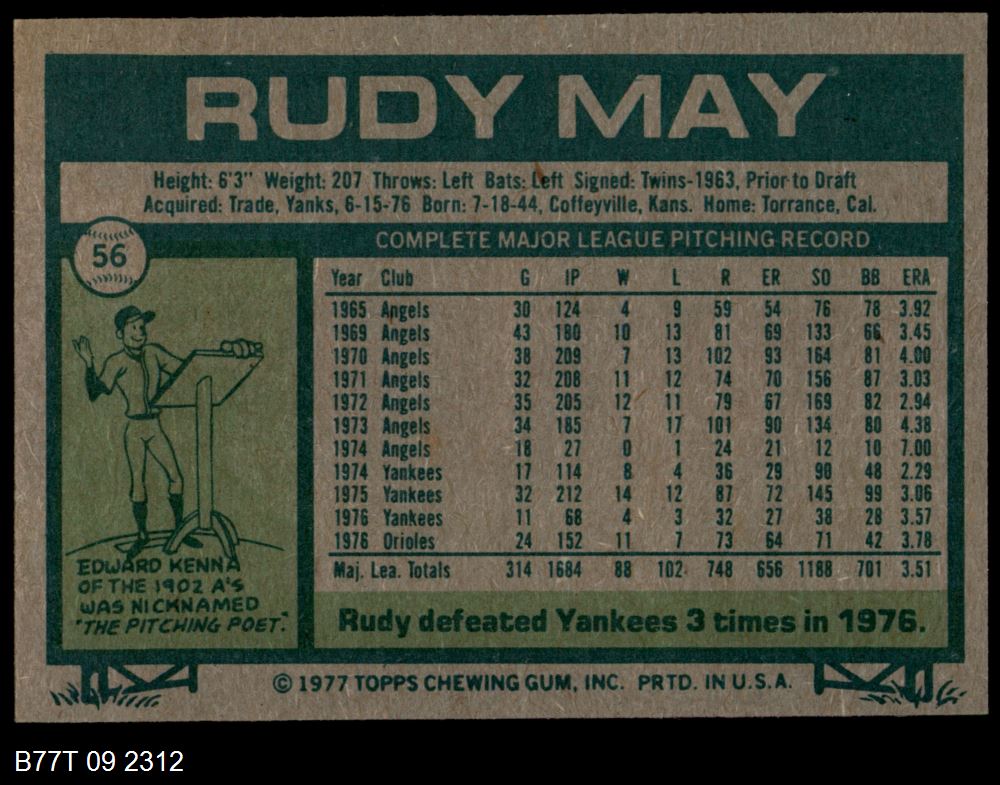 | 1977 Topps #56 Rudy May | 5 - EX | Front | Back |