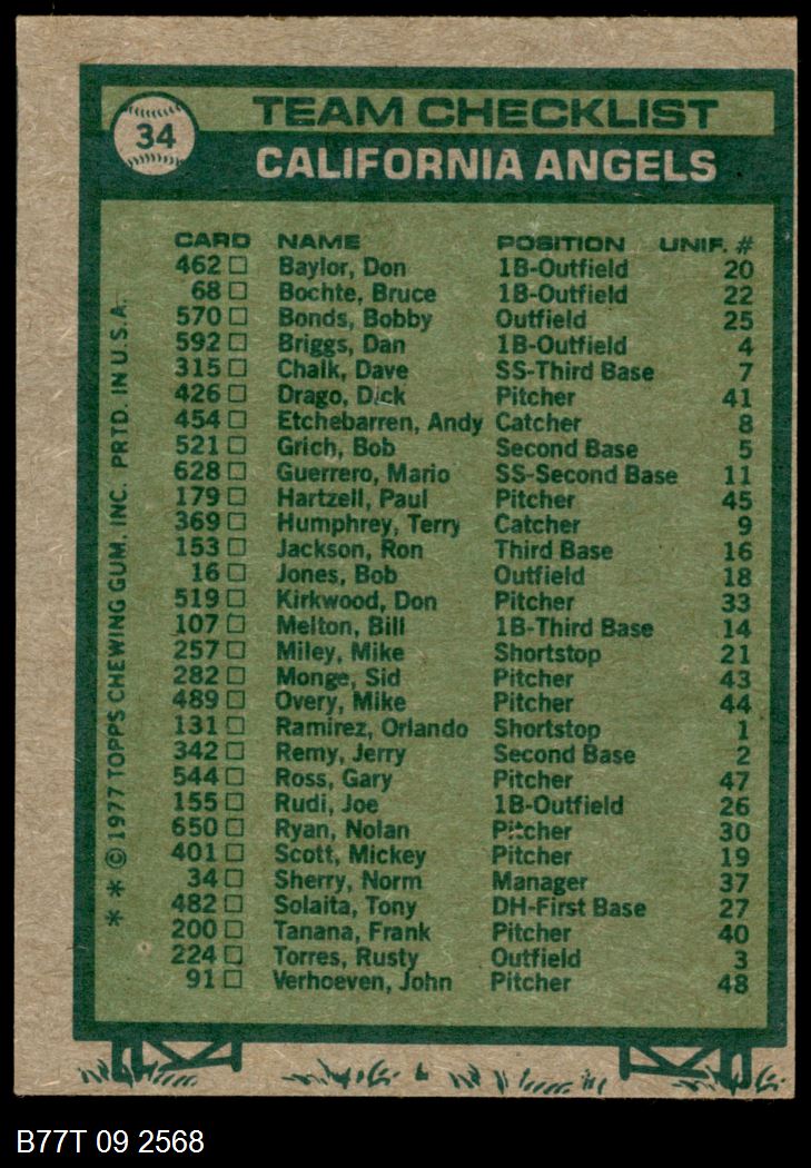 | 1977 Topps #34 - Norm Sherry Angels Team Checklist | 4 - VG/EX | Front | Back |