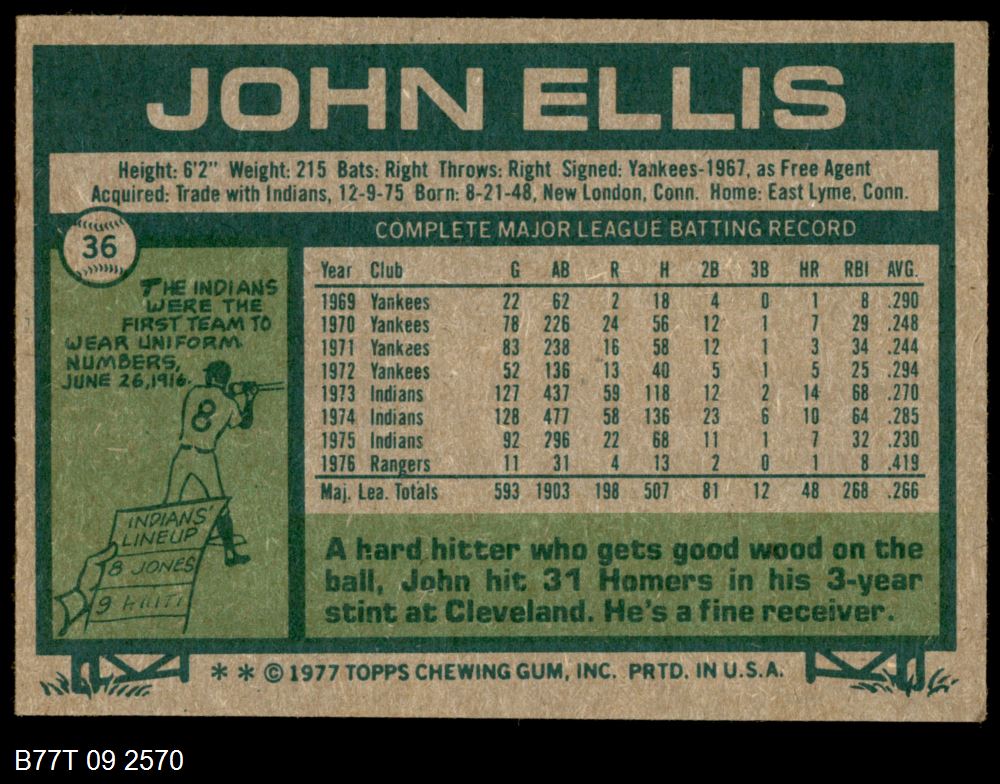 | 1977 Topps #36 John Ellis | 4 - VG/EX | Front | Back |