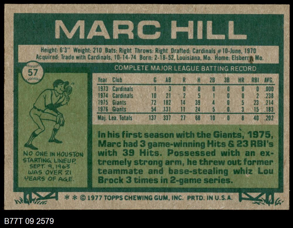 | 1977 Topps #57 Marc Hill | 5 - EX | Front | Back |
