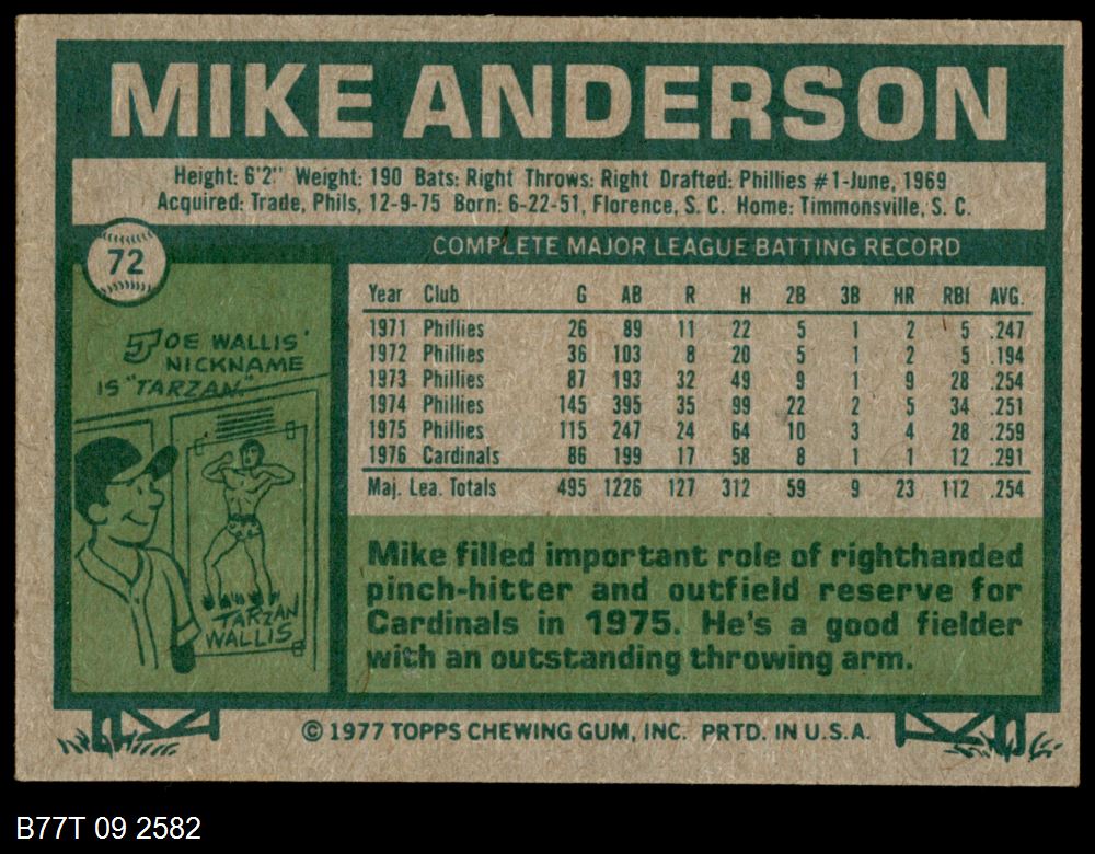 | 1977 Topps #72 Mike Anderson | 5 - EX | Front | Back |