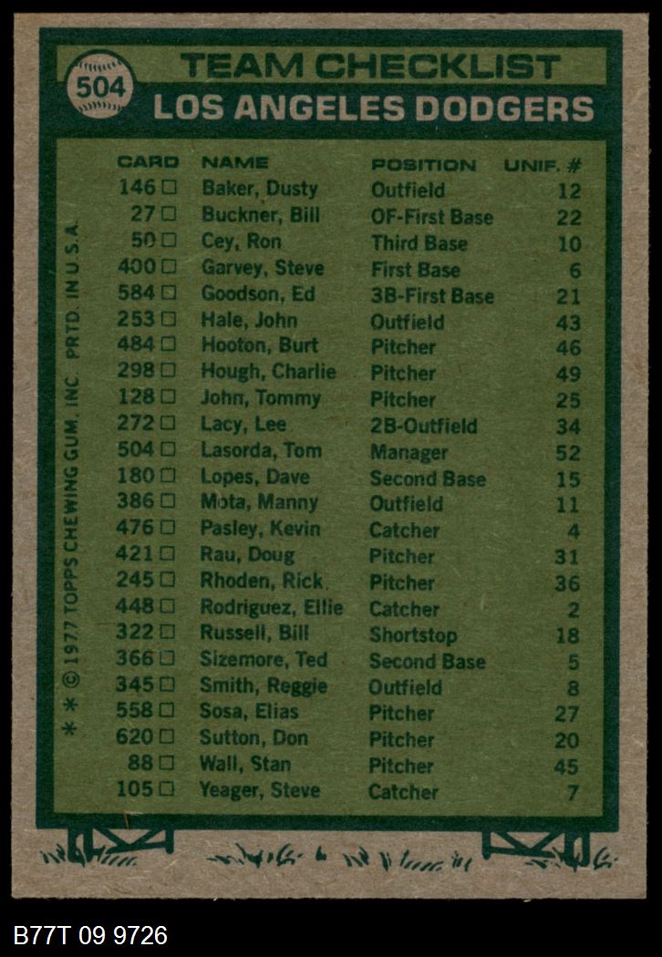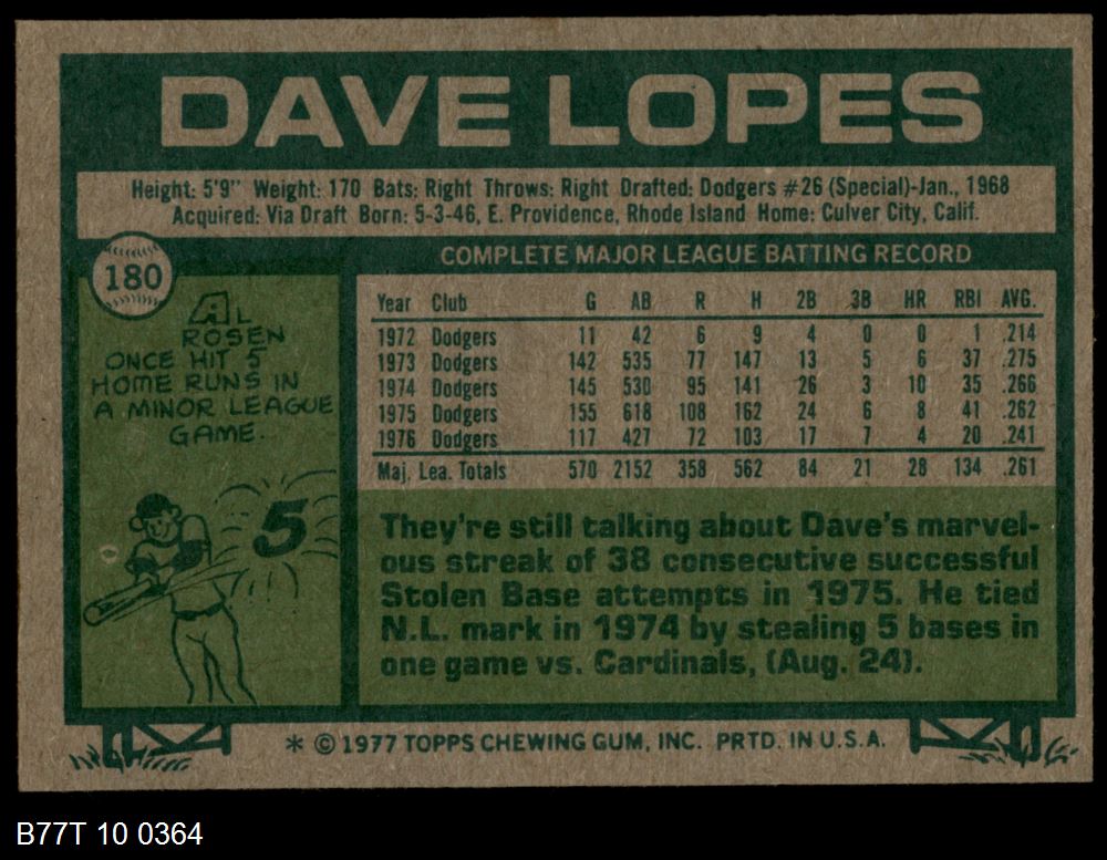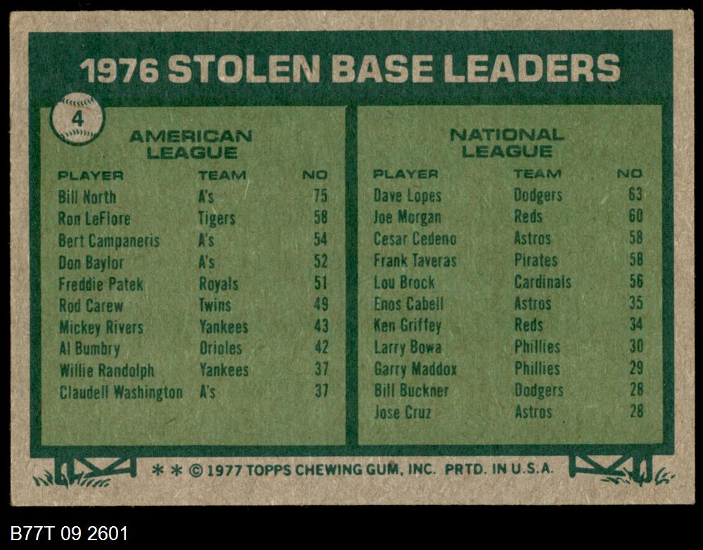 | 1977 Topps #4 - Bill North / Dave Lopes SB Leaders | 4.5 - VG/EX+ | Front | Back |