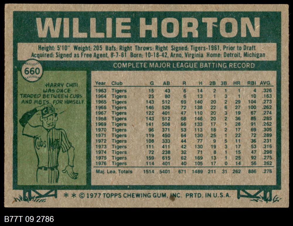 | 1977 Topps #660 Willie Horton | 4 - VG/EX | Front | Back |