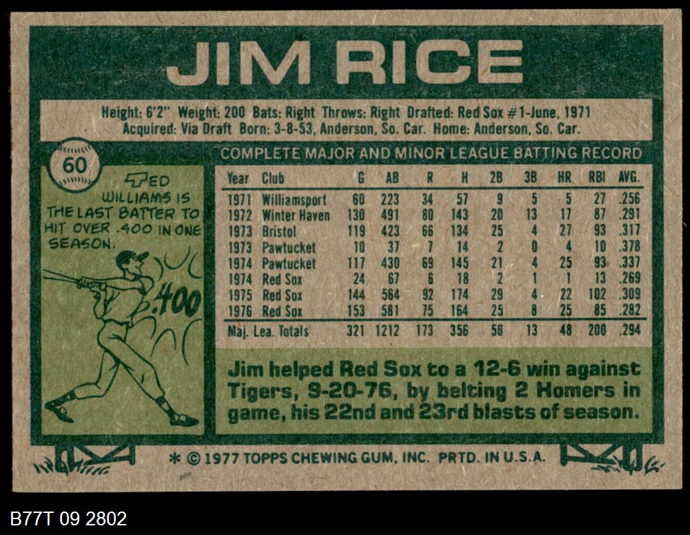 | 1977 Topps #60 Jim Rice | 5 - EX | Front | Back |