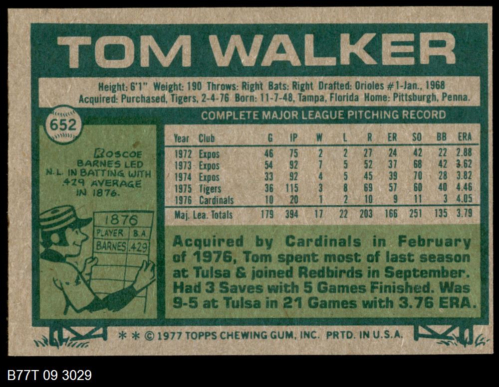 | 1977 Topps #652 Tom Walker | 4 - VG/EX | Front | Back |