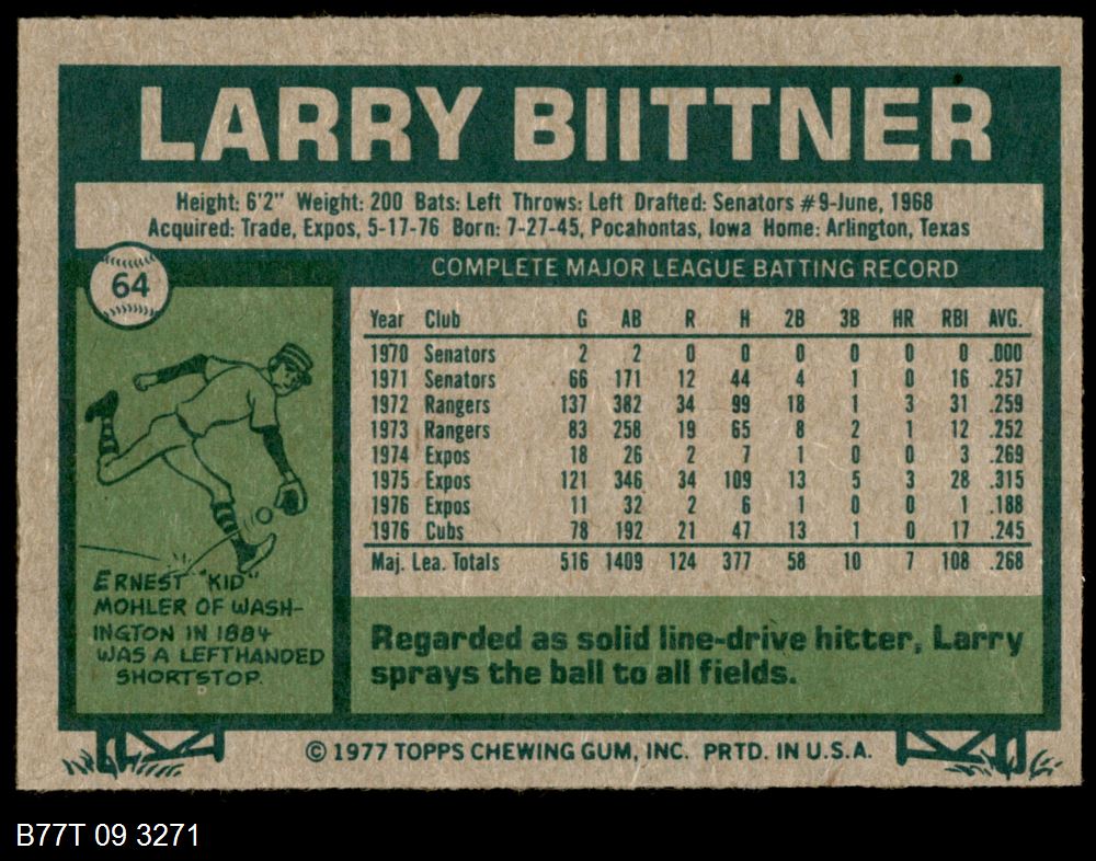 | 1977 Topps #64 Larry Biittner | 4 - VG/EX | Front | Back |