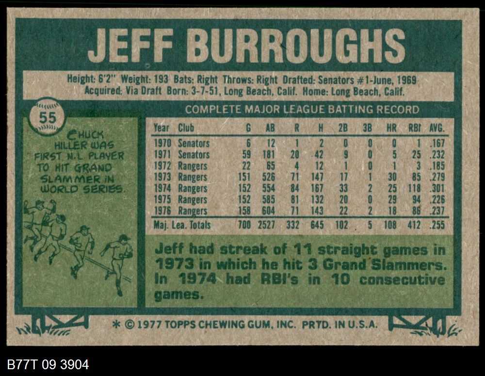 | 1977 Topps #55 Jeff Burroughs | 5 - EX | Front | Back |