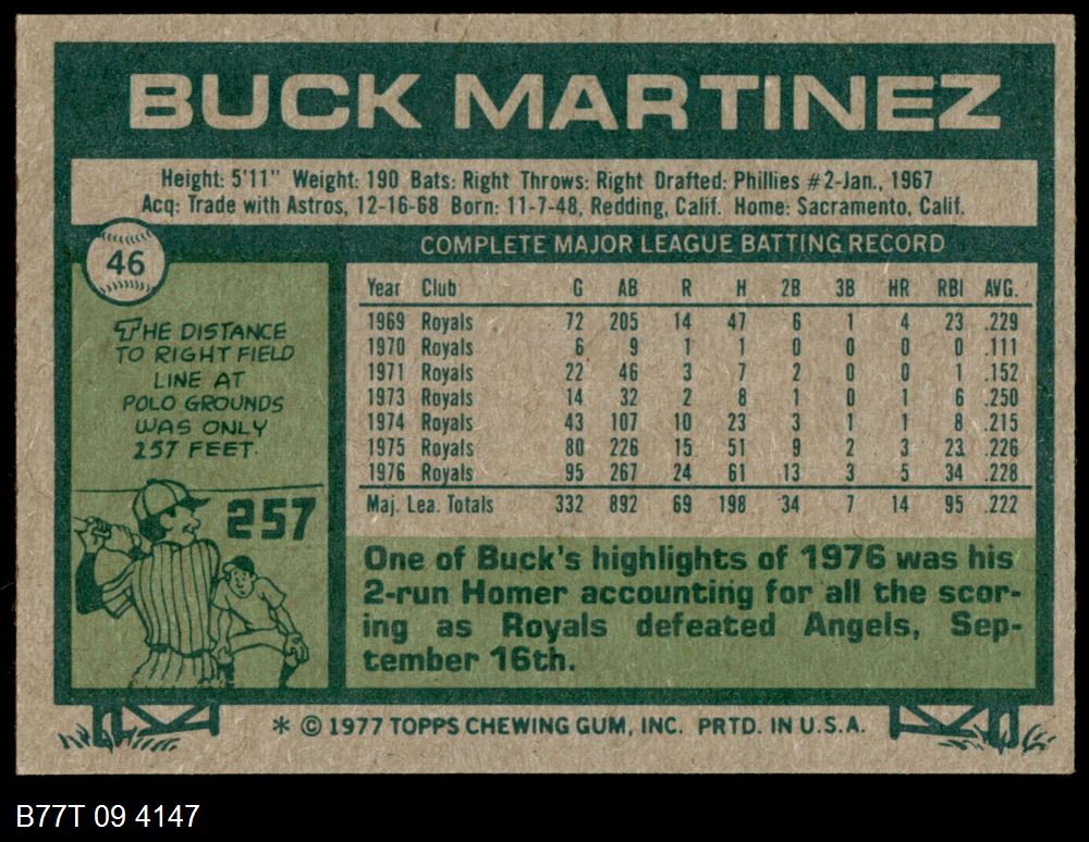 | 1977 Topps #46 Buck Martinez | 5 - EX | Front | Back |