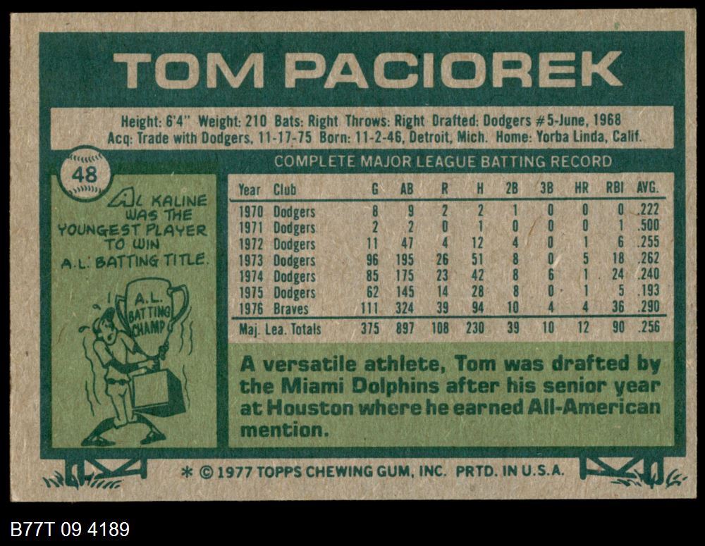 | 1977 Topps #48 Tom Paciorek | 5 - EX | Front | Back |