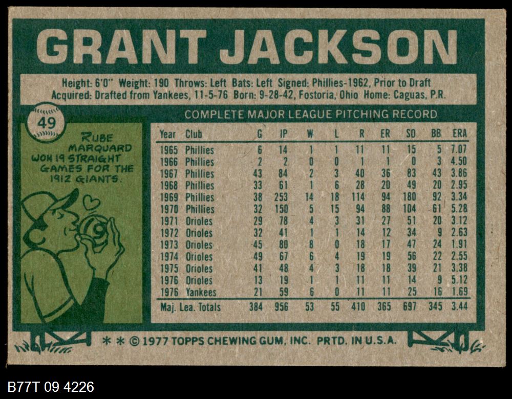 | 1977 Topps #49 Grant Jackson | 4 - VG/EX | Front | Back |