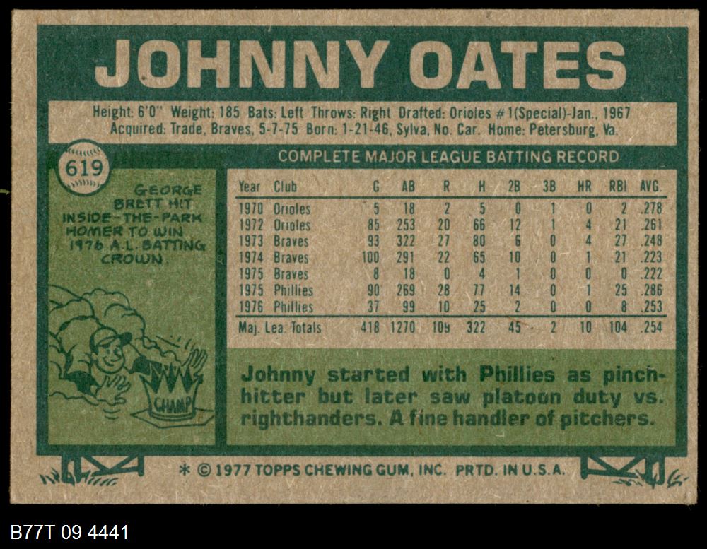 | 1977 Topps #619 Johnny Oates | 4 - VG/EX | Front | Back |