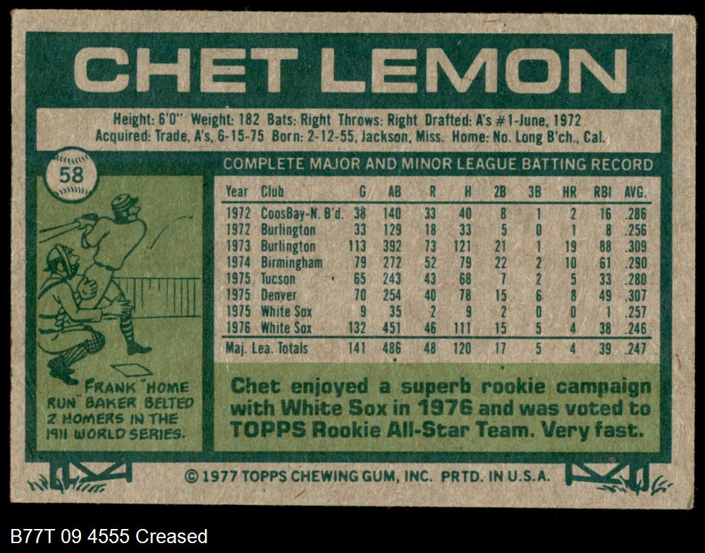| 1977 Topps #58 Chet Lemon | 2 - GOOD | Front | Back |