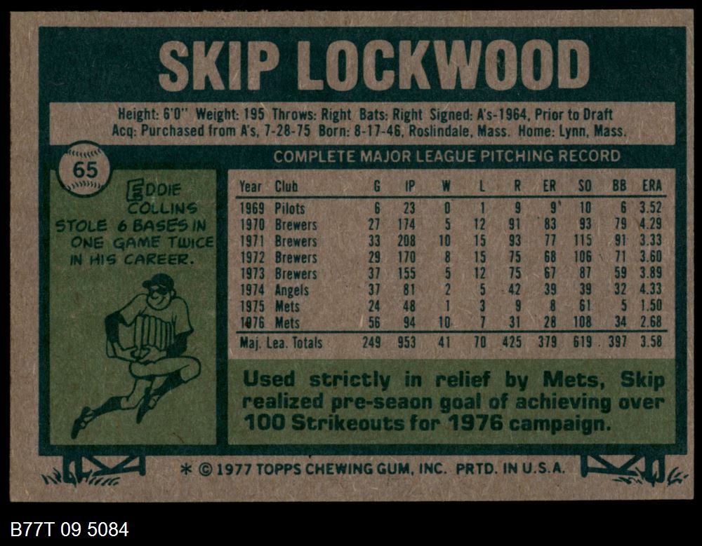 | 1977 Topps #65 Skip Lockwood | 4 - VG/EX | Front | Back |