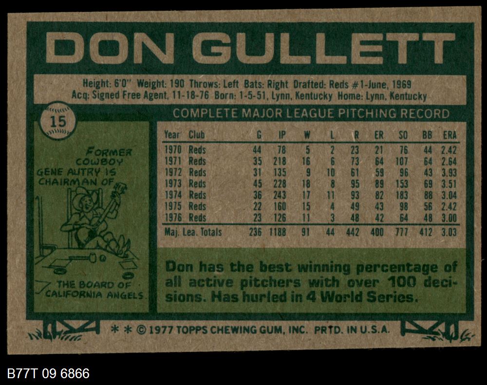 | 1977 Topps #15 Don Gullett | 4 - VG/EX | Front | Back |