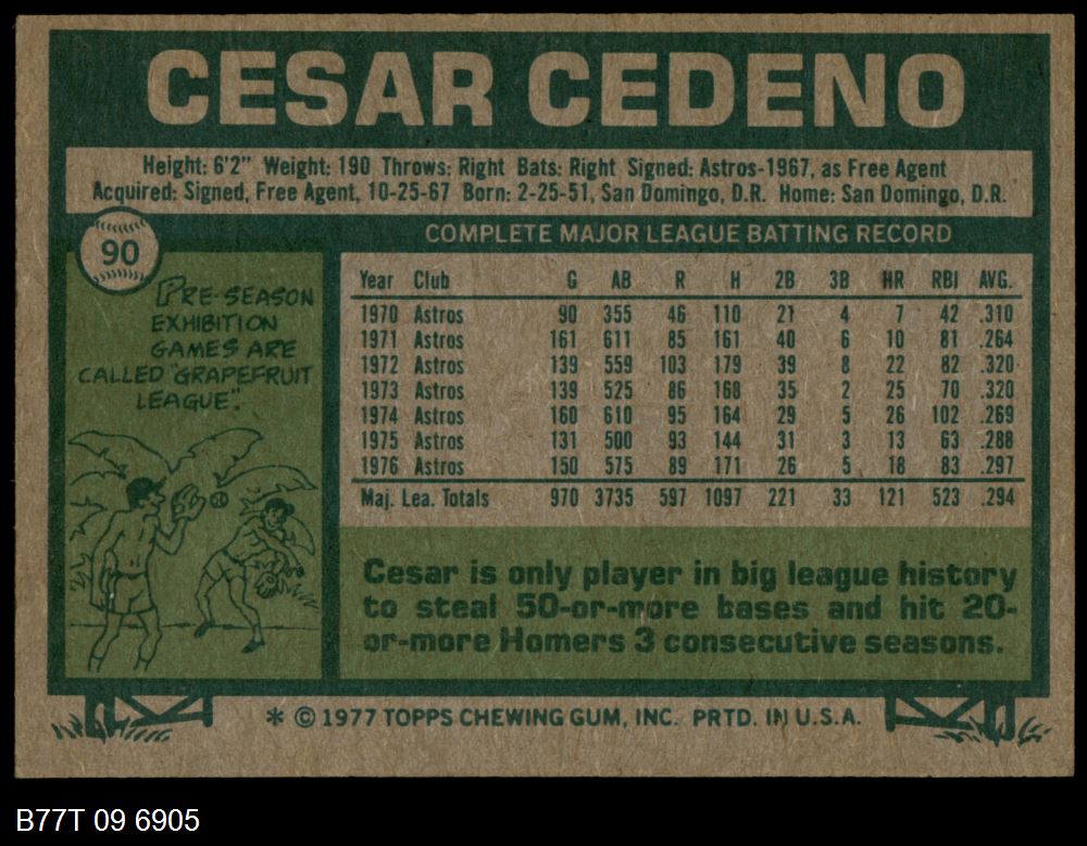 | 1977 Topps #90 Cesar Cedeno | 5 - EX | Front | Back |