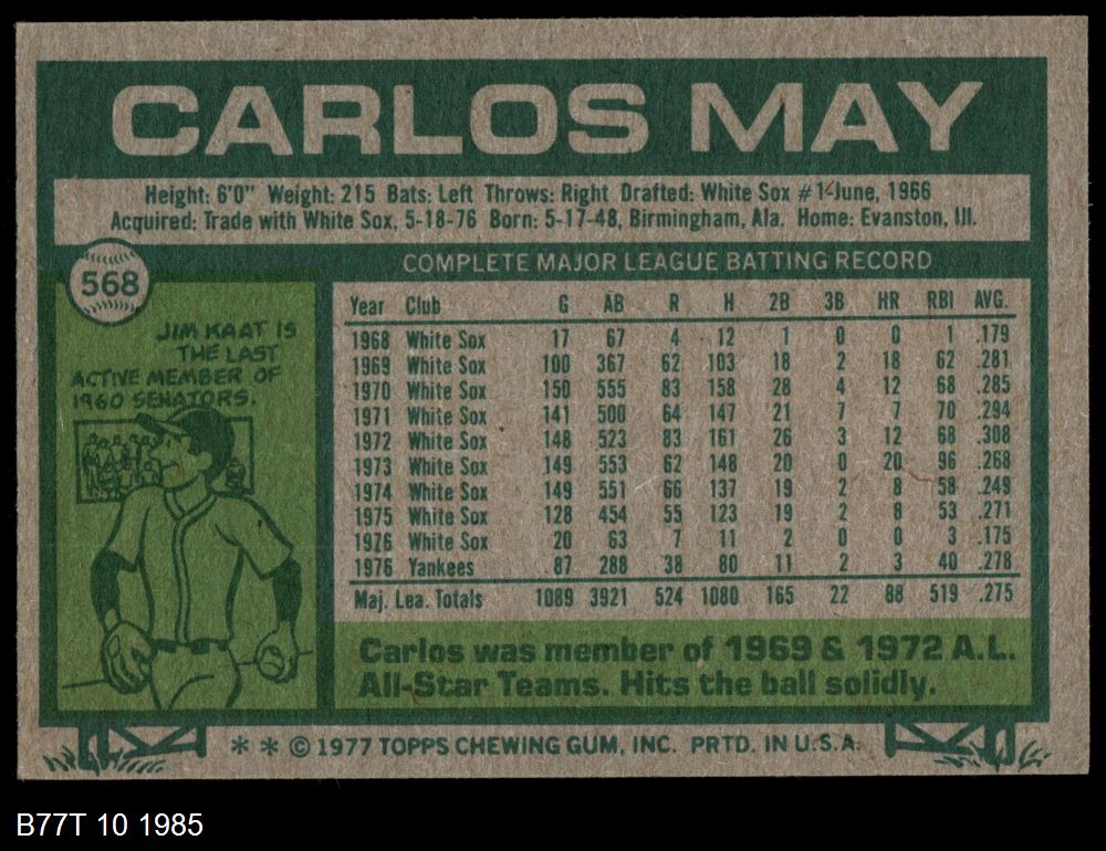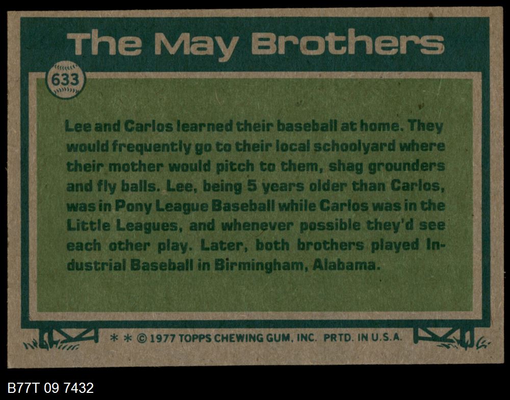 | 1977 Topps #633 - Lee May / Carlos May Big League Brothers | 4 - VG/EX | Front | Back |